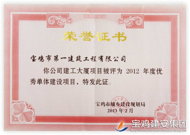 The Construction Building Project is assessed as the Excellent Monomer Construction Project of 2012