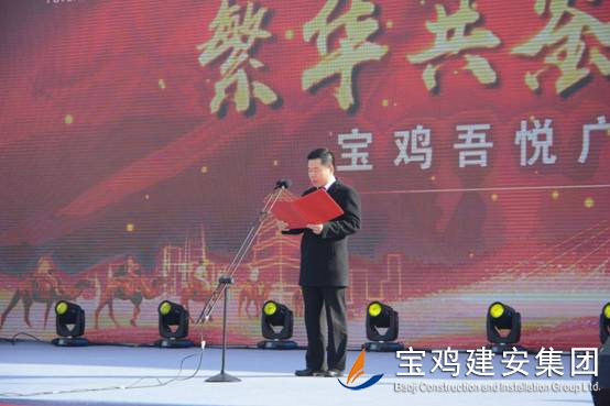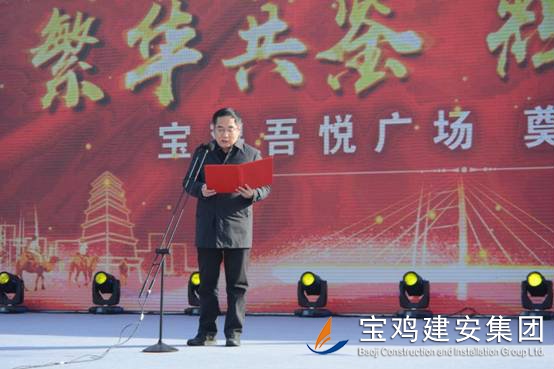 2018年1月16日上午,寶雞新城吾悅廣場項(xiàng)目奠基儀式在高新區(qū)舉行,該項(xiàng)目是繼恒大、碧桂園之后,寶雞高新區(qū)引進(jìn)的又一個千億級商業(yè)航母——新城控股集團(tuán)在西北地區(qū)建設(shè)的第二個一站式綜合廣場。奠基儀式上,公司董事長景常榮代表施工單位致辭,新城控股集團(tuán)副總裁陸建華代表建設(shè)單位致辭,高新區(qū)黨工委書記、管委會主任郝晉升代表政府單位致辭。高新區(qū)管委會領(lǐng)導(dǎo)、新城控股集團(tuán)領(lǐng)導(dǎo)、寶雞建安集團(tuán)董事長、寶雞市中小企業(yè)協(xié)會領(lǐng)導(dǎo)等為項(xiàng)目培土奠基。公司組織管理人員、施工人員共計(jì)300人參加了奠基儀式。