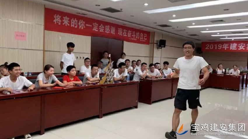 2019年7月21日,寶雞建安集團(tuán)股份有限公司在建安大廈22樓第三會議室開始了新員工入職培訓(xùn)。本次培訓(xùn)為期8天,內(nèi)容充實(shí),勞逸結(jié)合,使新員工由校園走向社會,從學(xué)生走向職場人有了一個(gè)平穩(wěn)的過渡。
