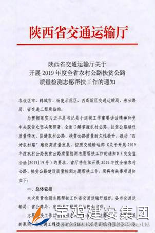 今年8月底,陜西省交通廳下發(fā)《關(guān)于開展2019年度全省農(nóng)村公路扶貧公路質(zhì)量檢測志愿幫扶工作的通知》,通知轄區(qū)內(nèi)試驗檢測機(jī)構(gòu)自愿報名參加扶貧公路義務(wù)檢測活動,對自愿報名并且通過資格能力審核的檢測單位隨機(jī)抽取各市的待檢縣,實(shí)施幫扶檢測活動,并要求于10月中旬完成檢測數(shù)據(jù)匯總表和分析報告上報工作。