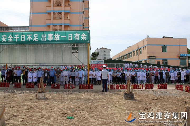 鳳翔縣醫(yī)院3號住院樓工程是全市重點建設項目之一,也是省、市、縣各級領導密切關注的民生工程。本項目建設地址位于縣醫(yī)院內,占地面積2100平方米,總建筑面積為45663.98平方米,框架結構二十六層(其中地下兩層,地上二十四層),建筑高度97.1米,設計使用年限為50年,概算總投資1.98億元。項目自開工以來,受到鳳翔縣醫(yī)院領導高度重視和大力支持。通過此次消防實戰(zhàn)演練,項目部將更為嚴格的開展工地消防安全管理工作,重點做好以下三項工作: