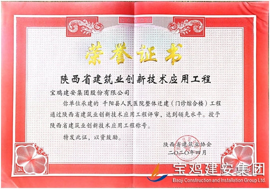 本工程2019年被評為“陜西省優(yōu)質結構工程”、“ 陜西省省級文明工地”。