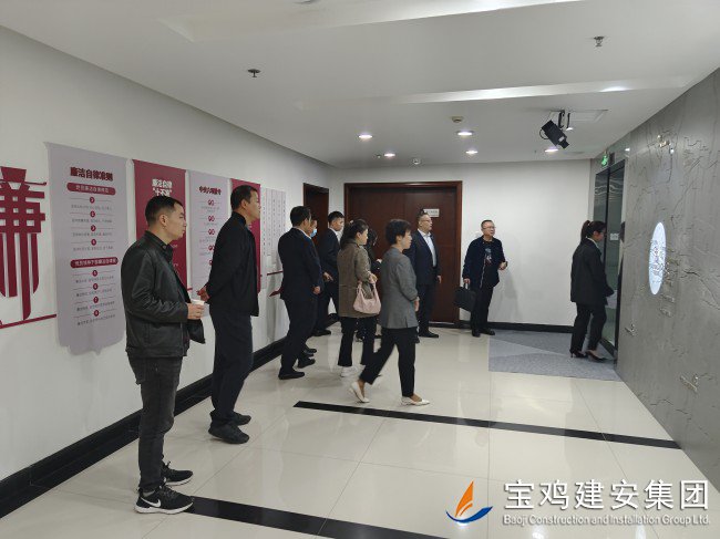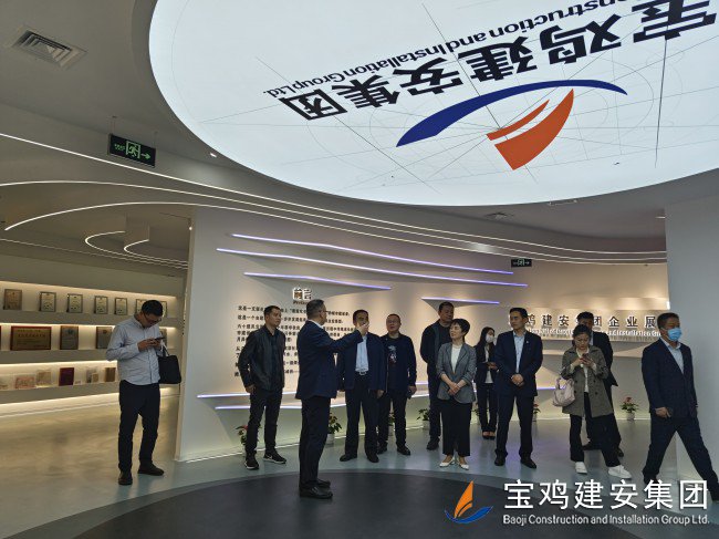 在公司總經(jīng)理胥永寧等集團(tuán)領(lǐng)導(dǎo)的陪同下,考察團(tuán)一行前往寶雞建安大廈,觀看企業(yè)宣傳片,了解集團(tuán)經(jīng)營(yíng)產(chǎn)業(yè)概況。代表團(tuán)一行還參觀了公司23樓體育健身設(shè)施場(chǎng)館及職工文化娛樂(lè)配套項(xiàng)目;在建安大廈22樓企業(yè)展廳里,嘉賓們仔細(xì)觀看了陳列在此的企業(yè)榮譽(yù)成績(jī)、代表性工程及歷史實(shí)物,在胥總和展廳講解員的引導(dǎo)和解說(shuō)下,代表團(tuán)一行全面了解了寶雞建安集團(tuán)六十年輝煌歷史,以及集團(tuán)在推動(dòng)寶雞城建事業(yè)中所做出的卓越貢獻(xiàn)和重要地位。