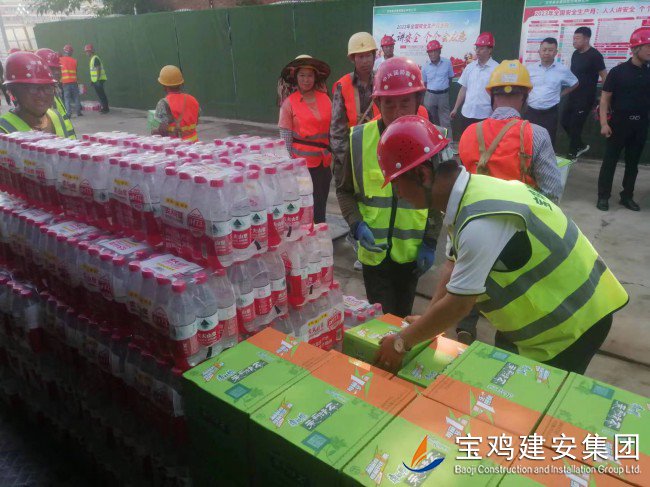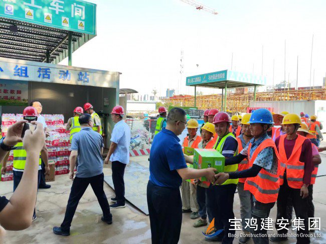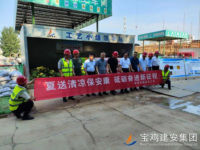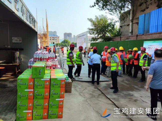 718日上午,寶雞高新區(qū)管委會(huì)黨工委委員、管委會(huì)副主任楊海翔,高新區(qū)總工會(huì)主席李廣強(qiáng),區(qū)教育系統(tǒng)黨委書記、教育體育局局長(zhǎng)唐宏,副局長(zhǎng)劉輝等一行領(lǐng)導(dǎo),前往建安集團(tuán)承建的寶雞高新第三幼兒園建設(shè)項(xiàng)目工地,走訪慰問(wèn)一線員工,開(kāi)展“夏送清涼”活動(dòng)。