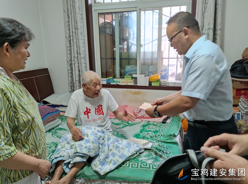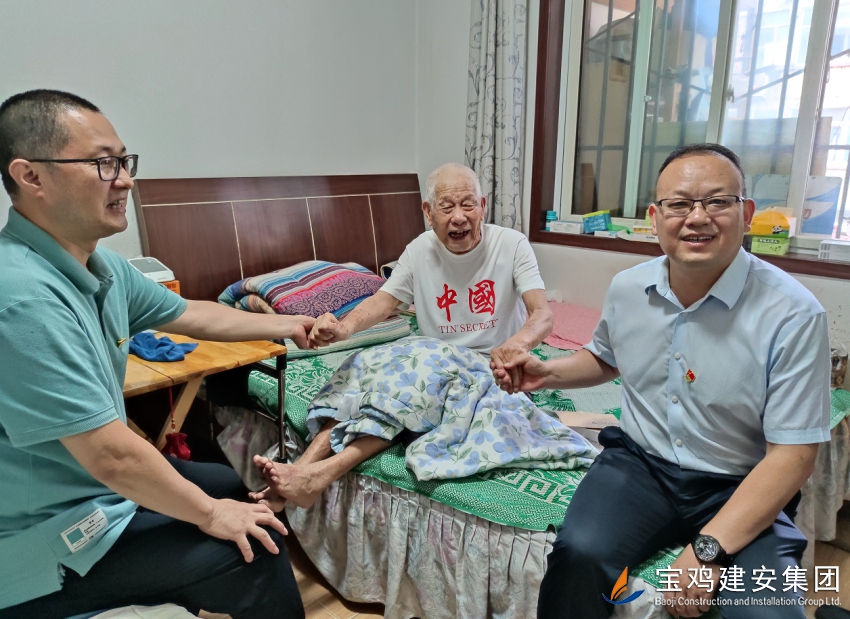 在建黨103周年之際,公司黨委副書記胥永寧帶著市委組織部及集團黨委的親切關(guān)懷與誠摯問候,對建國前入黨的老黨員荊玉華同志進行了慰問。 在荊玉華同志家里,97歲高齡的荊師傅拖著年邁的身體從床上坐起來,熱情地和大家打招呼。胥書記詳細(xì)詢問了老前輩的健康狀況及日常起居,將組織的關(guān)愛及慰問帶給了荊玉華同志,并叮囑這位老黨員一定要保重身體,健康長壽。