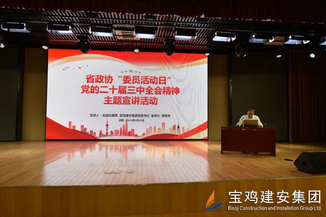2024年9月20日下午,寶雞建安集團(tuán)股份有限公司在省政協(xié)委員、公司黨委書記、董事長(zhǎng)景常榮的帶領(lǐng)下,成功舉辦了以黨的二十屆三中全會(huì)精神為主題的宣講活動(dòng)。此次活動(dòng)在公司建安大廈24樓多功能廳舉行,公司黨委委員、黨支部書記、高中層領(lǐng)導(dǎo)及部分黨員群眾等360余人積極參與。